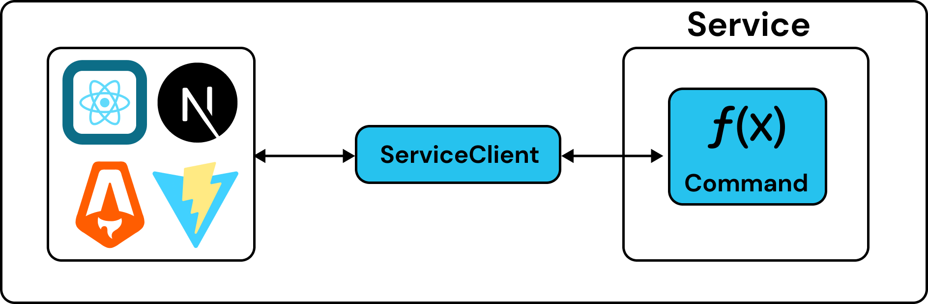 Commands are designed to streamline implementation and integration. Using the ServiceClient, you can call them directly from your frontend (or another service) without generating code.