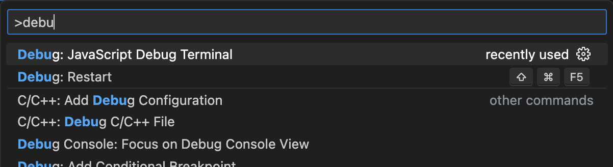 To open a terminal, use the Command Palette and search for "JavaScript Debug Terminal".