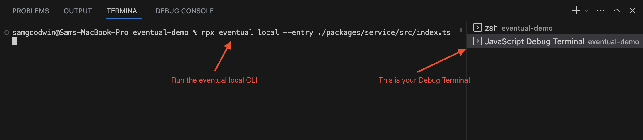 Eventual ships with an eventual local CLI to run a service on your machine for quick and easy debugging.
