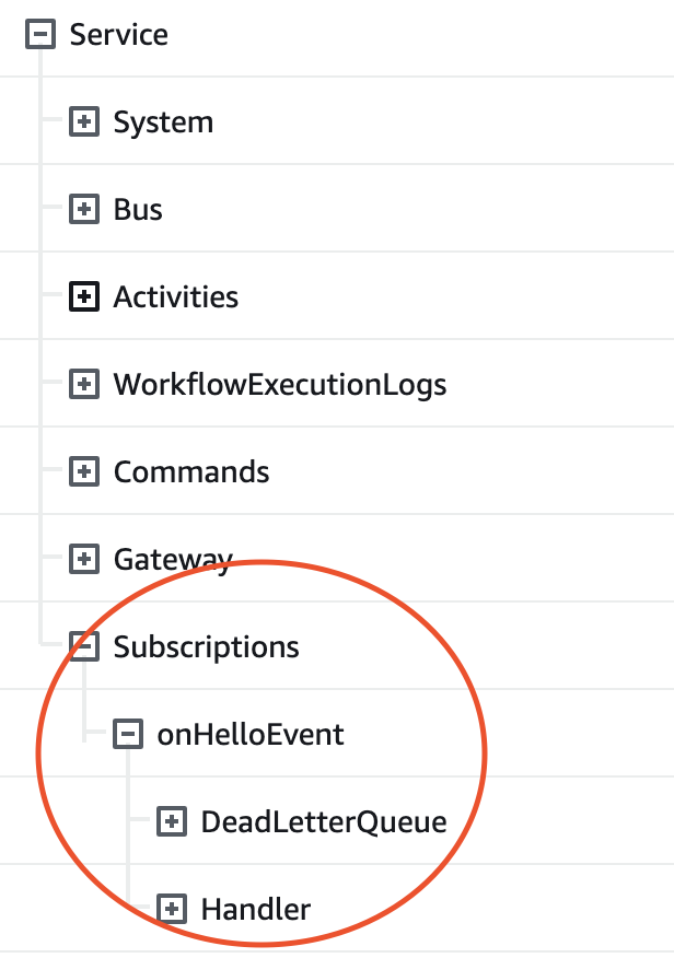 If you go to your deployed Stack in CloudFormation, you can see a list of all Subscriptions and their associated Dead Letter Queue and Handler Function.